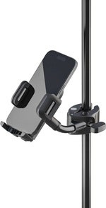 Smidig universell hållare för smartphones. Monteras t.ex. på mikrofonstativets rör.