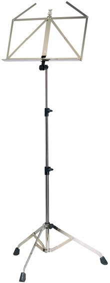 3-delat teleskopstativ med en extra robust benbas med rejäla gummifötter. Både den fullt vinklingsbara notplattan samt fästerna för höjdjustering är av en mera sofistikerad och rejäl typ än man är van vid på transportabla notställ.