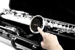 Artikelnummer 4076431Stativ för altsaxofon som kan förvaras inuti klockstycket.