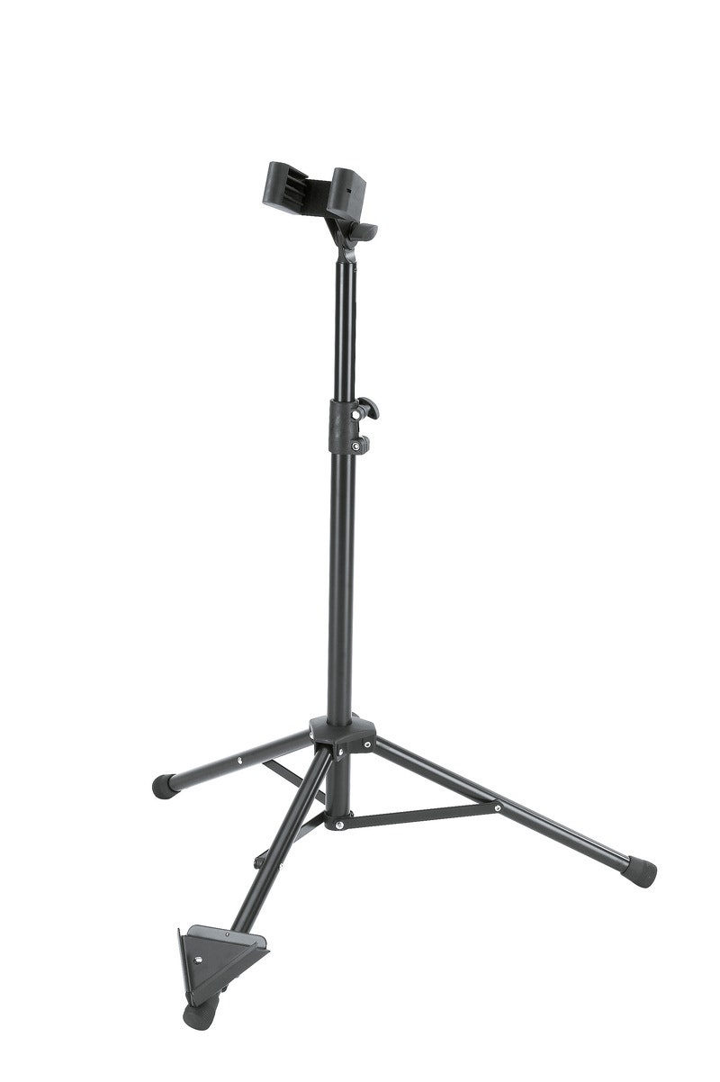 The universal support bracket can be adjusted in tilt and width. The support bracket can be adjusted to the individual instrument by converting the removable rubber pads. The newly designed V-shaped base for the endpin means it is easy to position the instrument in the stand. The stand is easy to fold compactly for transport.