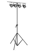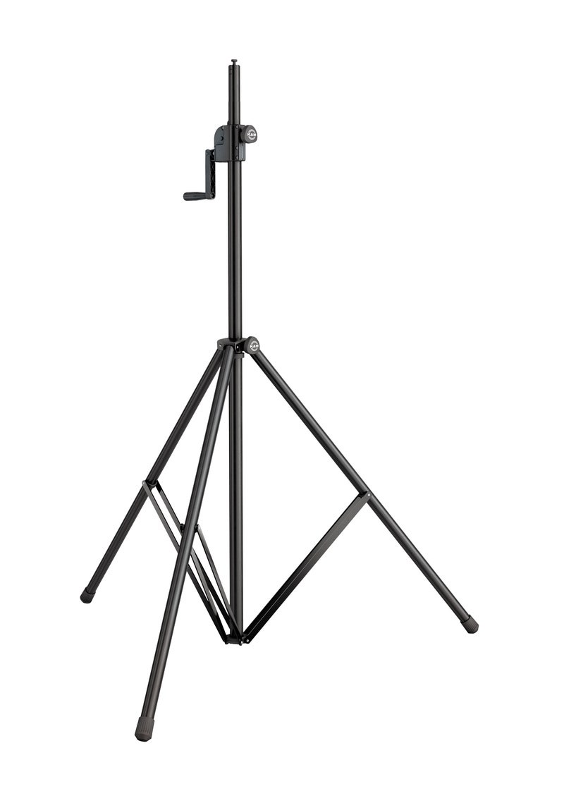 High-quality aluminium light stand for professional use. The height adjustment from 1,755 to 3,000 mm is comfortable and safe thanks to a crank mechanism with »Auto Lock« locking system. The ergonomic operation proves to be simple and user-friendly. The robust stand is focused on stability and steadiness, so that the 5° stability test according to DIN 56950-3 with a load capacity of 35 kg is easily achieved. The compact transport dimensions are 1,733 x 150 x 202 mm and the weight is approx. 8.0 kg. The integrated M10 threaded bush can be used to directly mount additional trusses or individual spotlights.