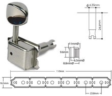 Stämskruv för gitarr. 3 Vänster, 3 höger. Krom.