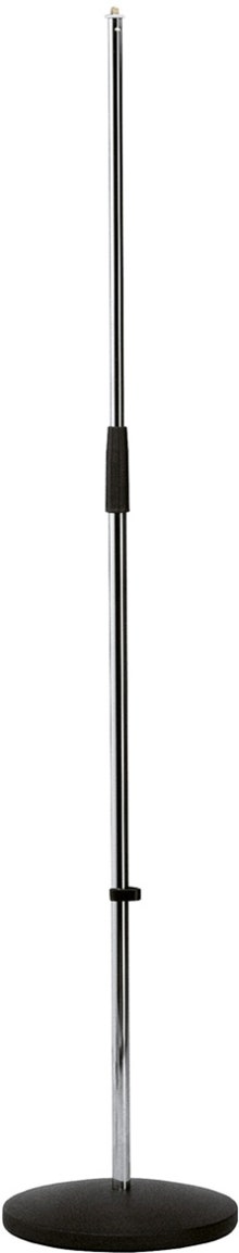 Rakt mikrofonstativ med rund fot, chrome finish.