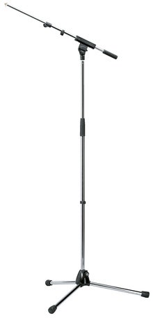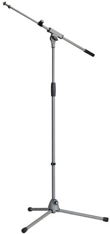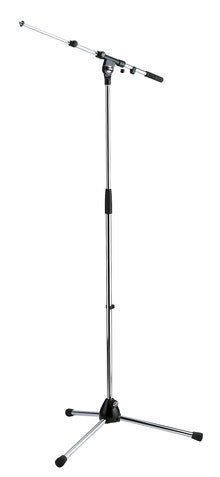 Mikrofonstativ, teleskopbom, långa ben, kromat.