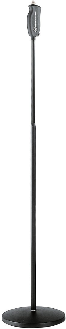 Rakt mikrofonstativ, rund fot, Soft Touch-enhandsgrepp, svart.