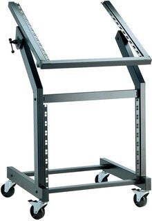 Kraftigt justerbart och ihopfällbart stativ för mixers och förstärkare.