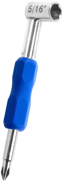 Verktyg med 8 funktioner i ett, skruvmejselbits och mutterdragare.