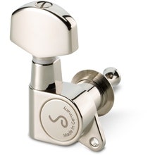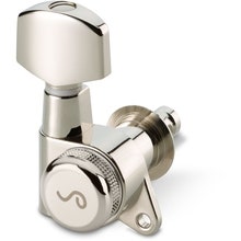 Låsbar stämskruv för gitarr. 3 vänster, 3 höger. Krom.